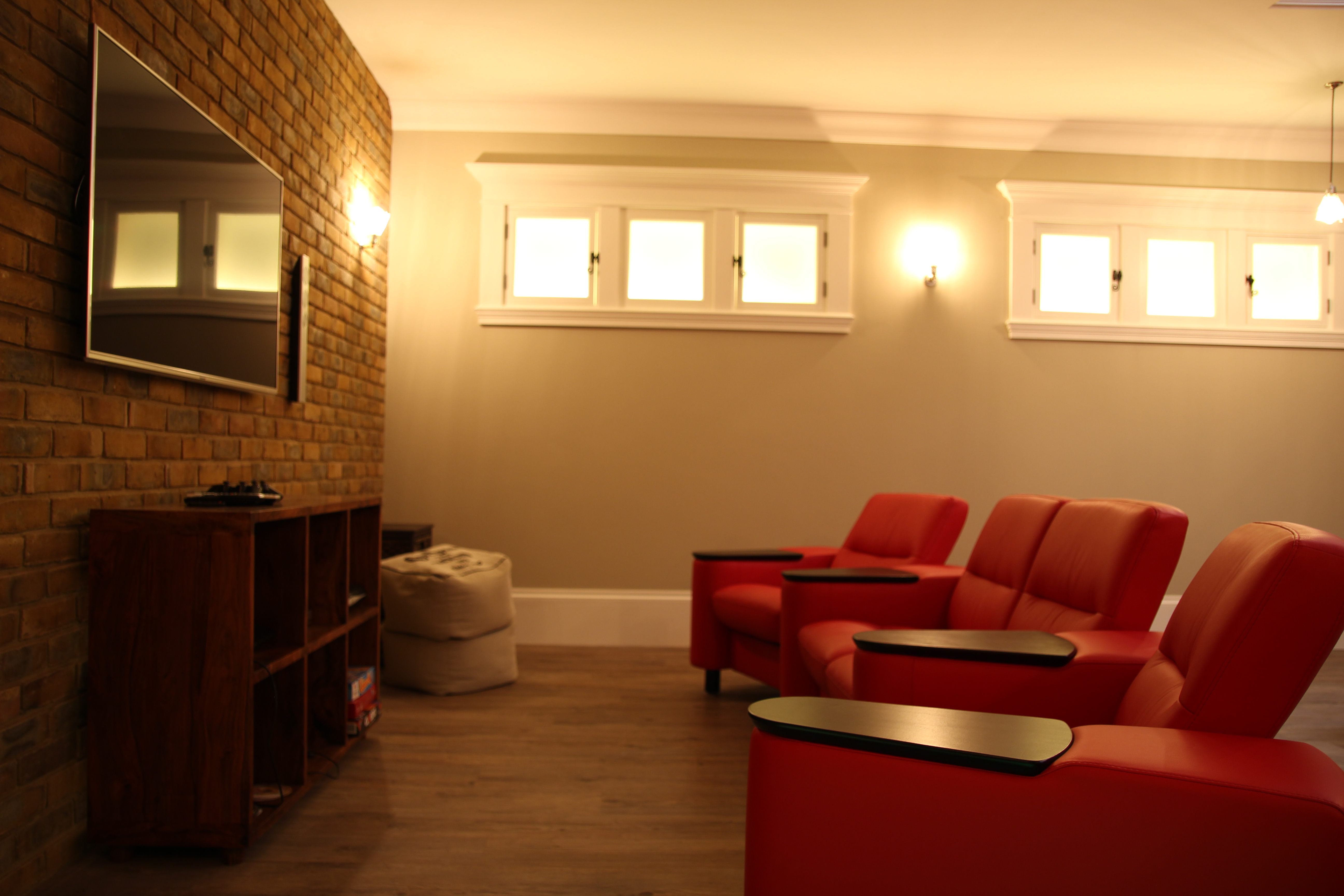 Faux windows giving illusion of “natural” daylight