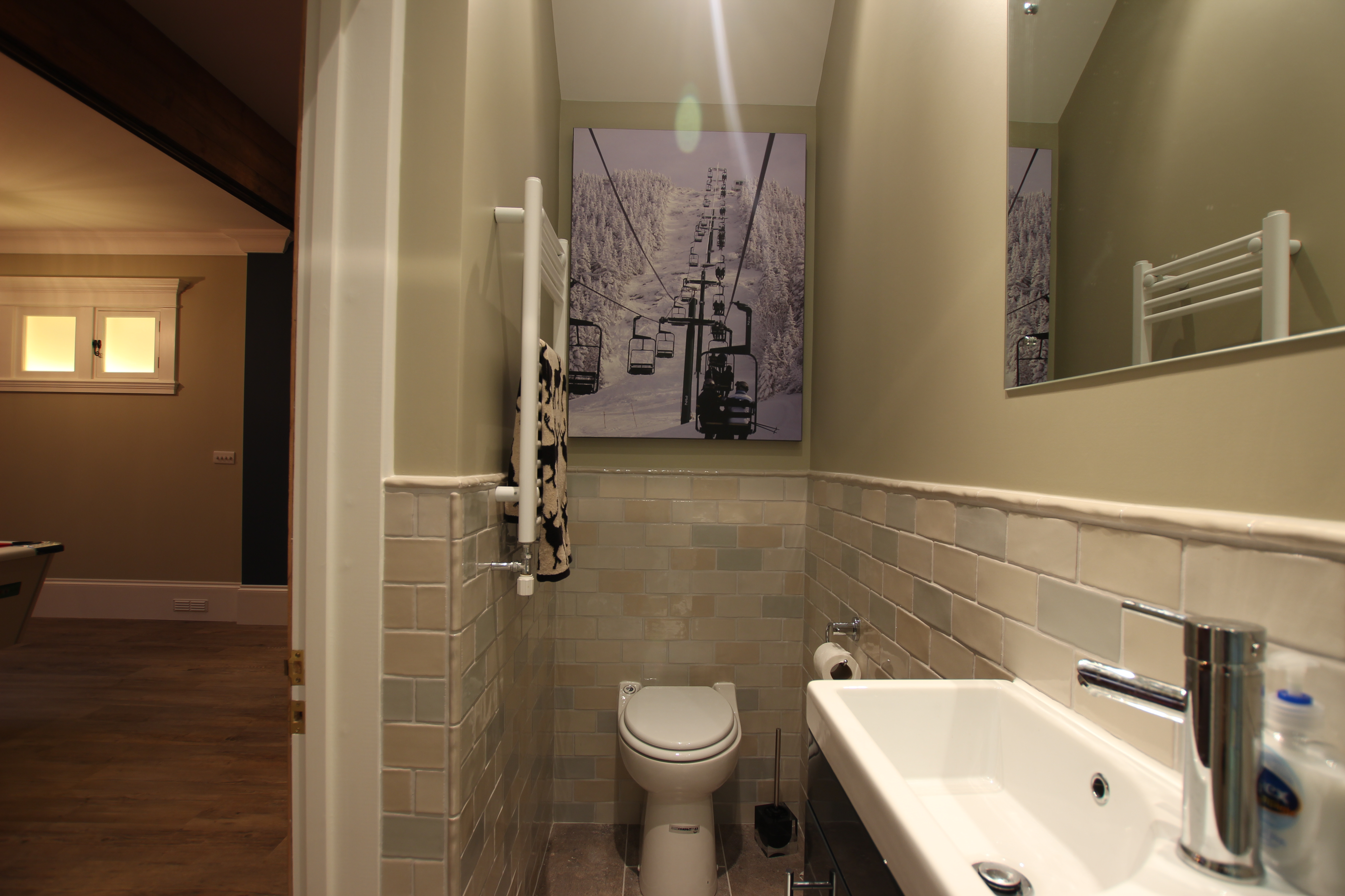 Vintage ski poster, crackle-glazed vintage tiles 1930s style